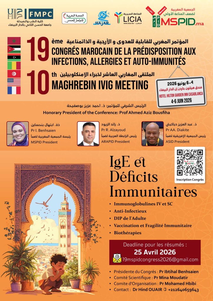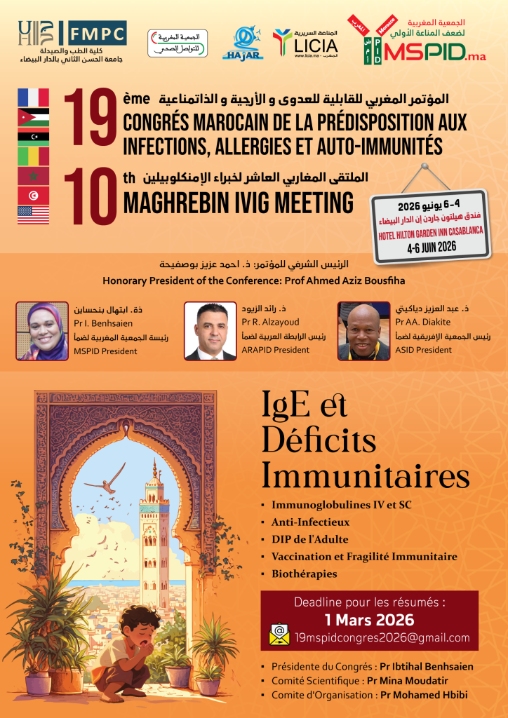 19th Moroccan Congress on Predisposition to Infections, Allergies, and Autoimmunity and 10th Maghrebin IVig meeting